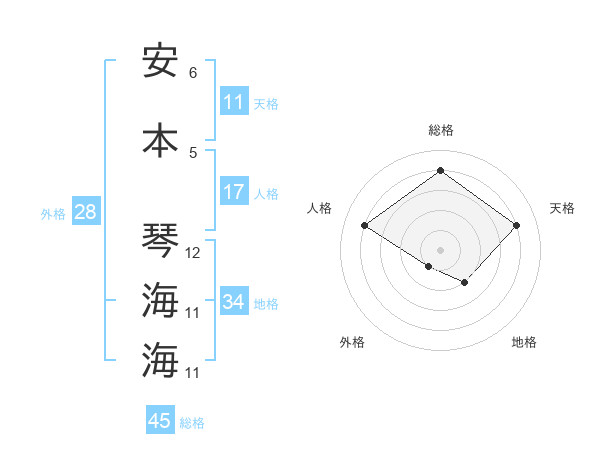 安本 琴海海さんを姓名の画数から五運を鑑定