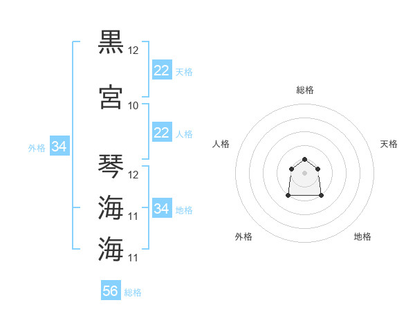 黒宮 琴海海さんの天格は22画の1点!