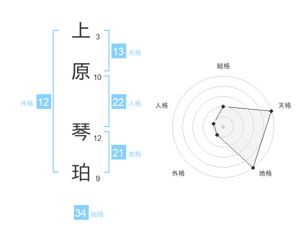 上原 琴珀さんを姓名の画数から五運を鑑定