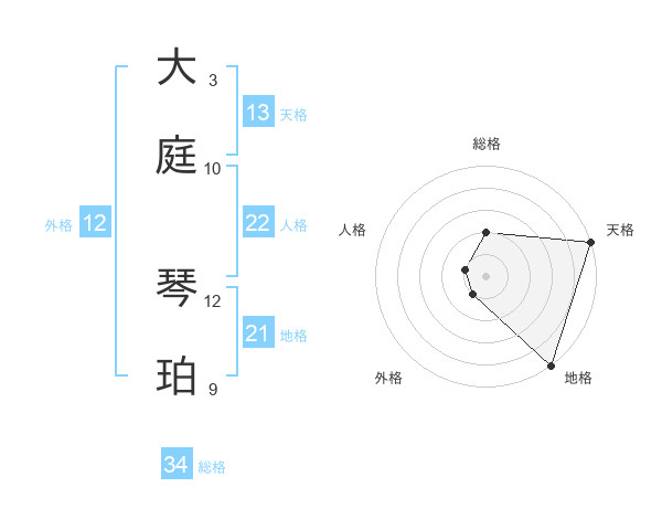 大庭 琴珀さんの天格は13画の5点!