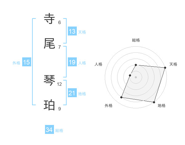寺尾 琴珀さんの天格は13画の5点!