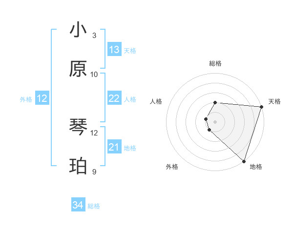 小原 琴珀さんの天格は13画の5点!