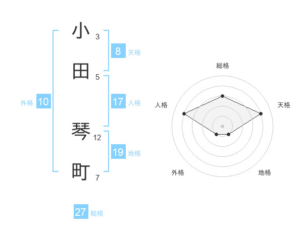 小田 琴町さんの総格は27画の3点!