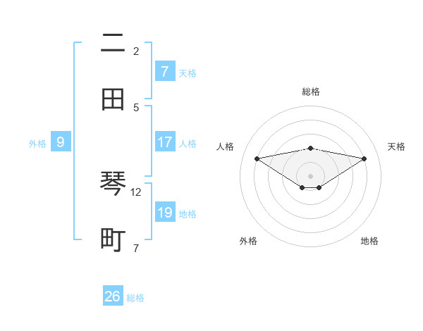 二田 琴町さんの総格は26画の2点!