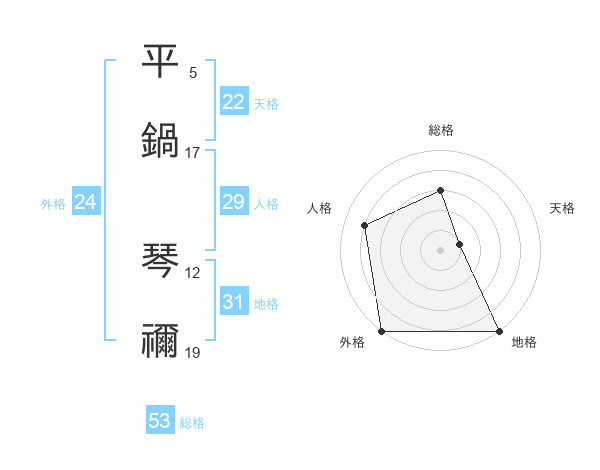 平鍋 琴禰さんの総格は53画の3点!