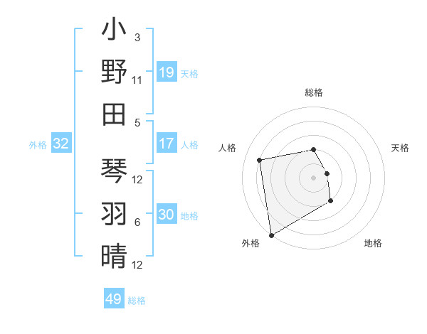 小野田 琴羽晴さんを姓名の画数から五運を鑑定