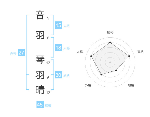 音羽 琴羽晴さんの総格は45画の4点!