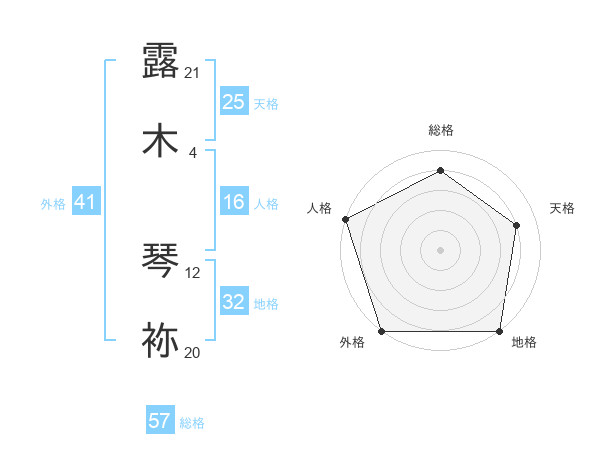 露木 琴袮さんの総格は57画の4点!