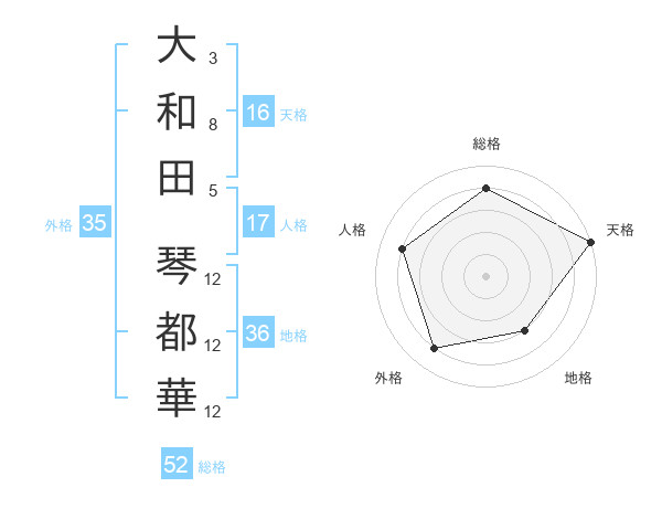 大和田 琴都華さんを姓名の画数から五運を鑑定