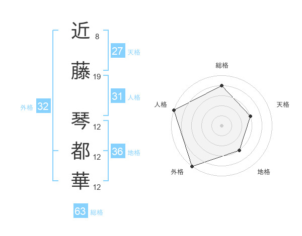 近藤 琴都華さんの総格は63画の4点!