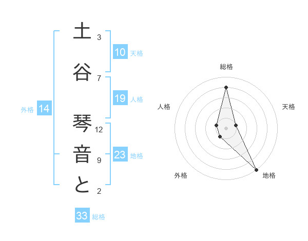 土谷 琴音とさんを姓名の画数から五運を鑑定