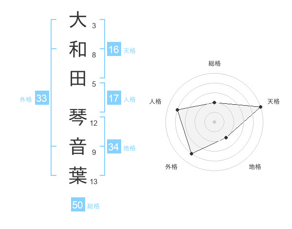 大和田 琴音葉さんの総格は50画の2点!