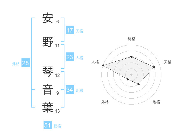 安野 琴音葉さんを姓名の画数から五運を鑑定