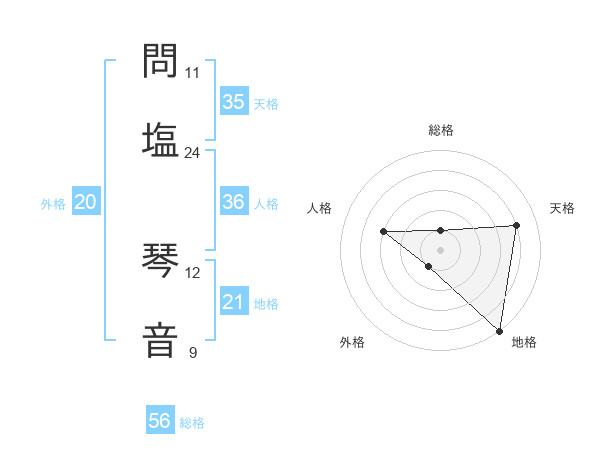 問塩 琴音さんを姓名の画数から五運を鑑定