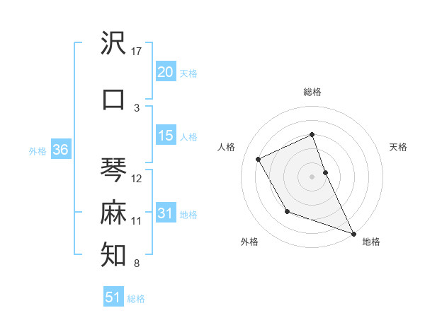 沢口 琴麻知さんを姓名の画数から五運を鑑定