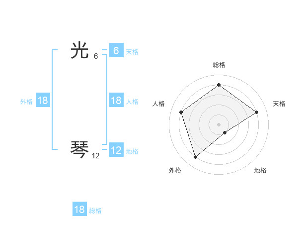 光 琴さんの総格は18画の4点!
