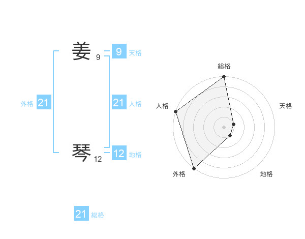 姜 琴さんの総格は21画の5点!