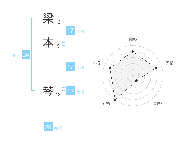 梁本 琴さんの天格は17画の4点!