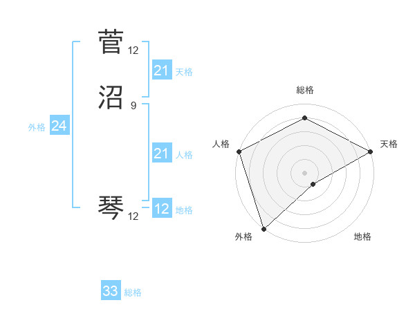 菅沼 琴さんの天格は21画の5点!