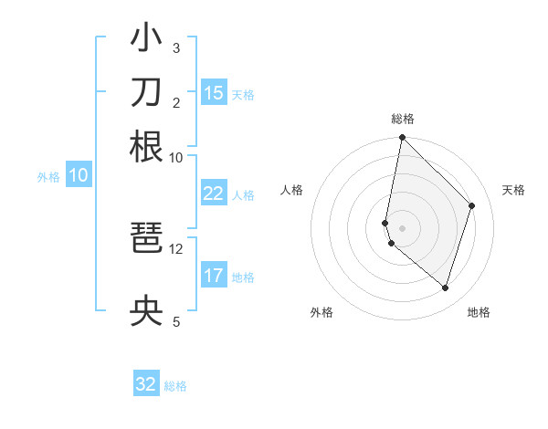 小刀根 琶央さんを姓名の画数から五運を鑑定