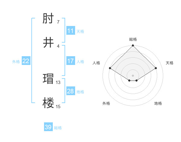 肘井 瑁楼さんを姓名の画数から五運を鑑定