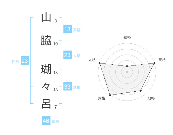 山脇 瑚々呂さんを姓名の画数から五運を鑑定