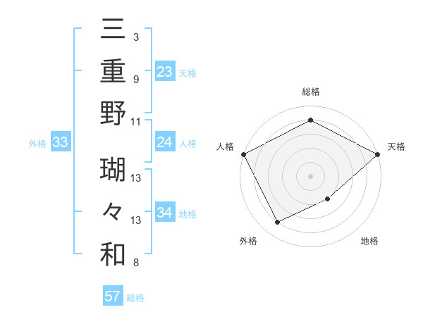 三重野 瑚々和さんの外格は33画の4点!