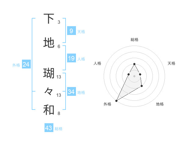 下地 瑚々和さんを姓名の画数から五運を鑑定