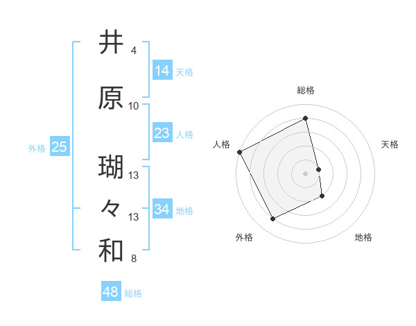 井原 瑚々和さんの総格は48画の4点!