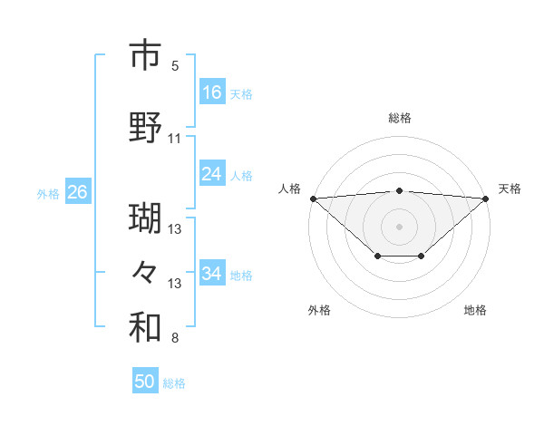 市野 瑚々和さんを姓名の画数から五運を鑑定