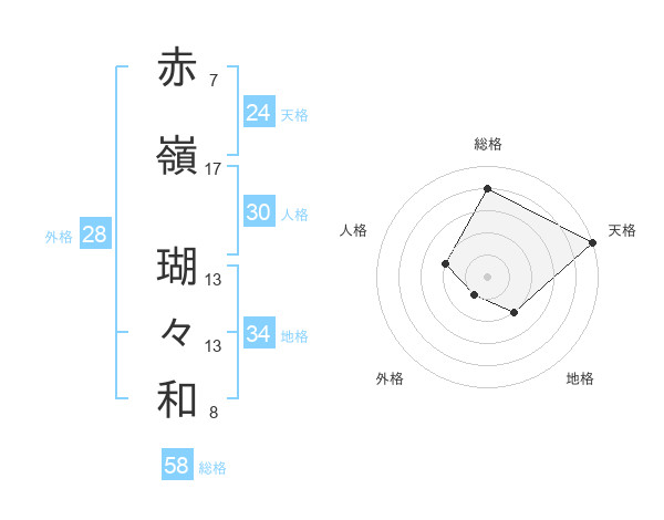 赤嶺 瑚々和さんの総格は58画の4点!