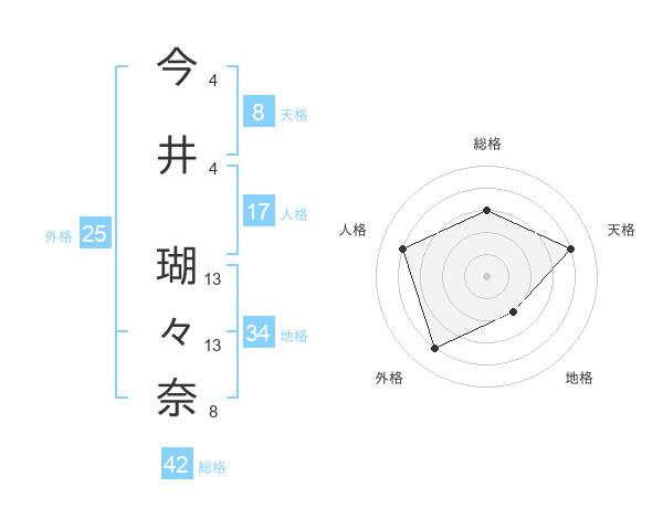 今井 瑚々奈さんを姓名の画数から五運を鑑定