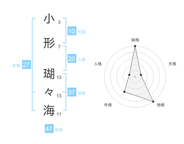 小形 瑚々海さんの総格は47画の5点