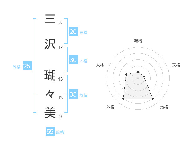 三沢 瑚々美さんを姓名の画数から五運を鑑定