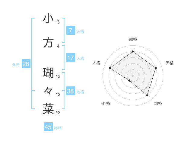 小方 瑚々菜さんの地格は38画の4点!