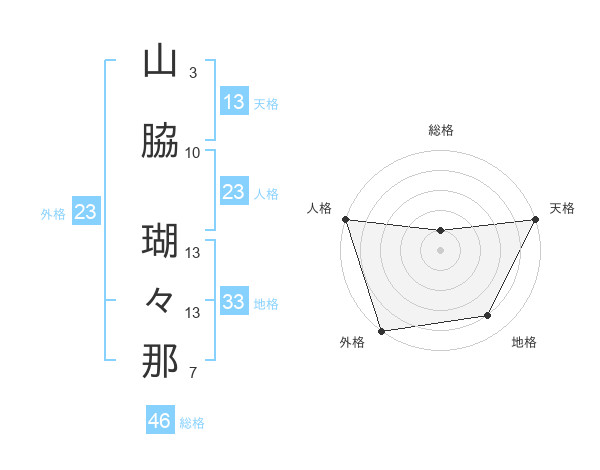 山脇 瑚々那さんを姓名の画数から五運を鑑定