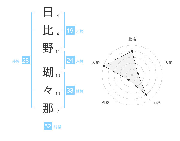 日比野 瑚々那さんの総格は52画の4点!