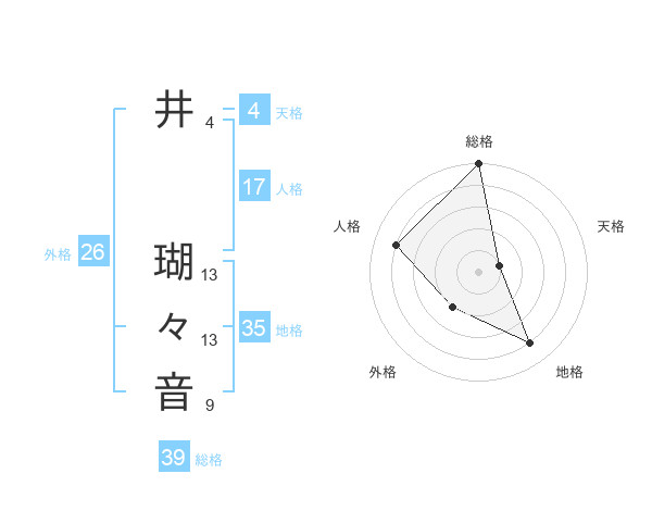 井 瑚々音さんを姓名の画数から五運を鑑定