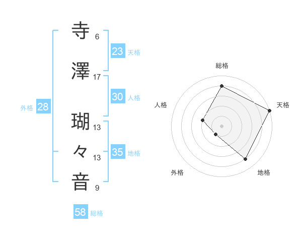 寺澤 瑚々音さんを姓名の画数から五運を鑑定