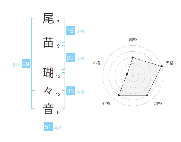 尾苗 瑚々音さんを姓名の画数から五運を鑑定