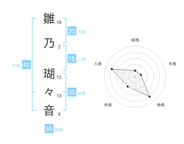 雛乃 瑚々音さんの総格は55画の1点!