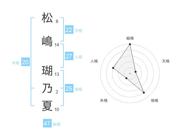 松嶋 瑚乃夏さんの総格は47画の5点!