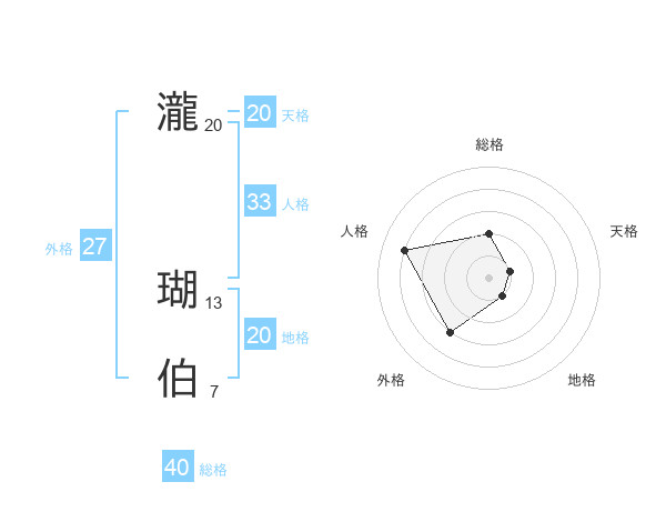 瀧 瑚伯さんの地格は20画の1点!