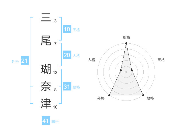 三尾 瑚奈津さんを姓名の画数から五運を鑑定