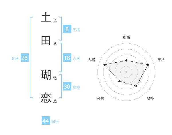 土田 瑚恋さんを姓名の画数から五運を鑑定