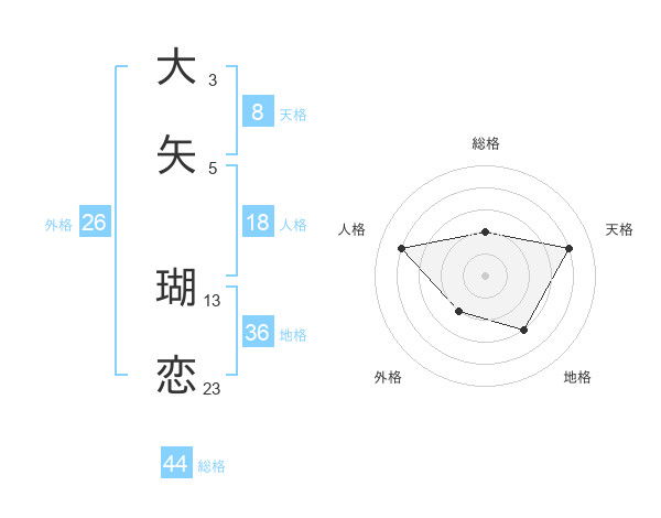 大矢 瑚恋さんを姓名の画数から五運を鑑定