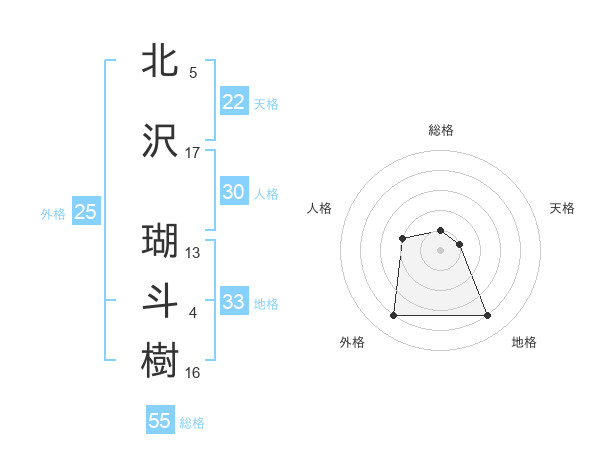 北沢 瑚斗樹さんを姓名の画数から五運を鑑定