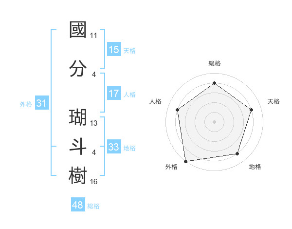 國分 瑚斗樹さんを姓名の画数から五運を鑑定