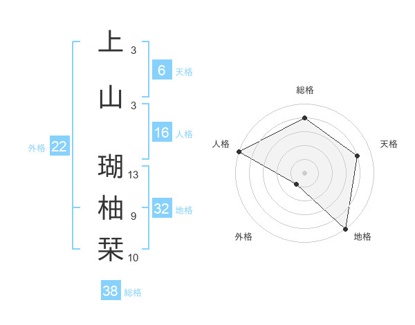 上山 瑚柚栞さんの総格は38画の4点!
