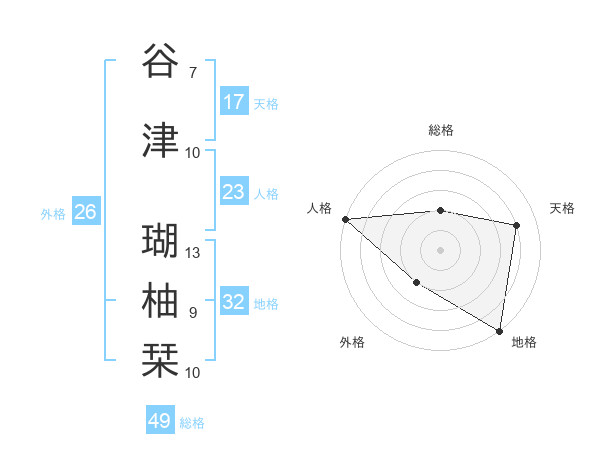 谷津 瑚柚栞さんを姓名の画数から五運を鑑定